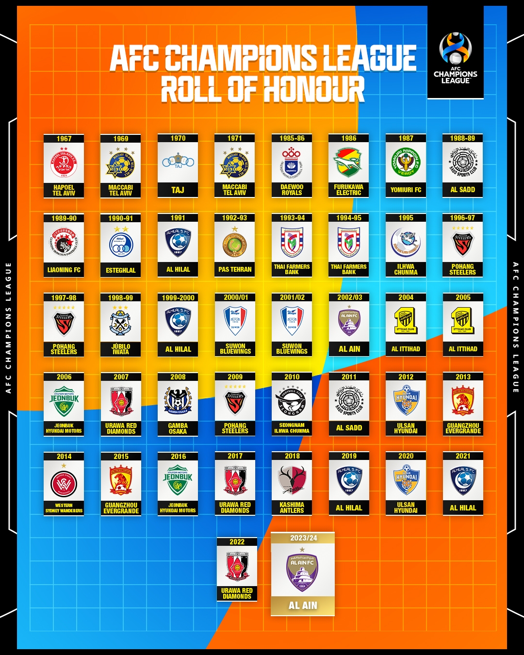 - 历届亚冠冠军一览:辽足x1,广州恒大x2,两队均已解散