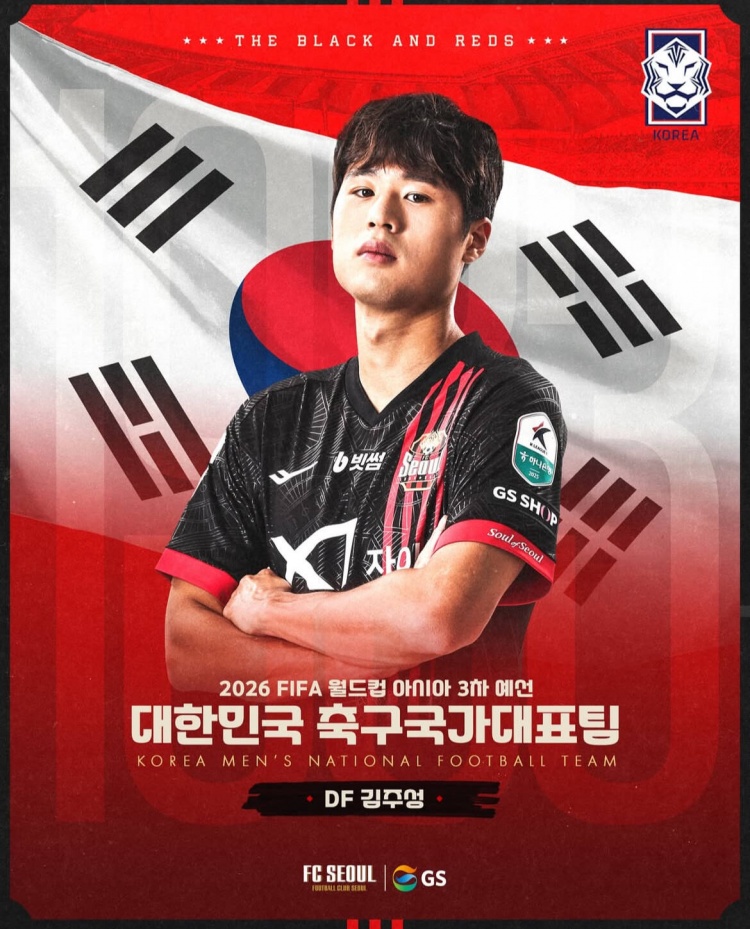 在球员入选后,首尔FC官方ins发布海报祝贺球员入选韩国队,并配文写道:“今日,韩国国家队发布公告,宣布我队后卫金朱晟补充入选球队大名单,他将随队参加3月份的两场18强赛。请向他送上支持和鼓励!”